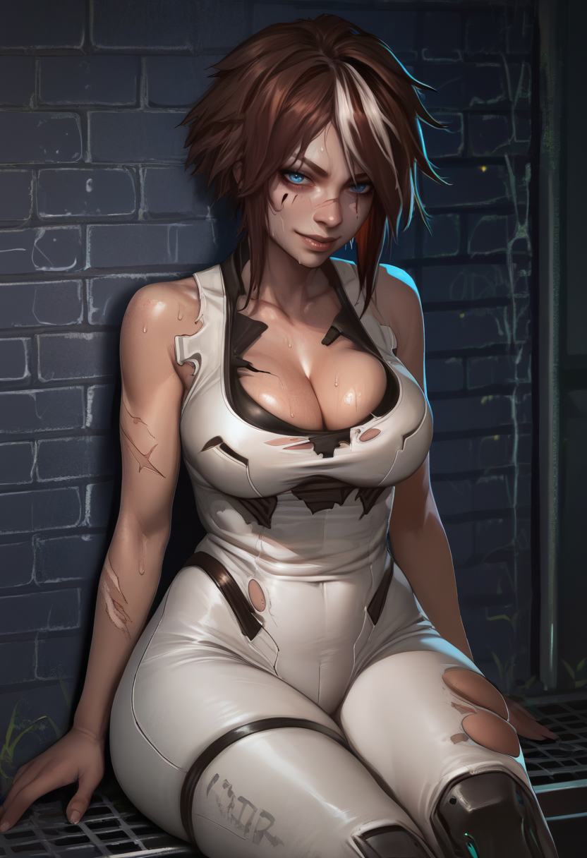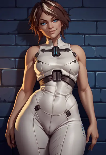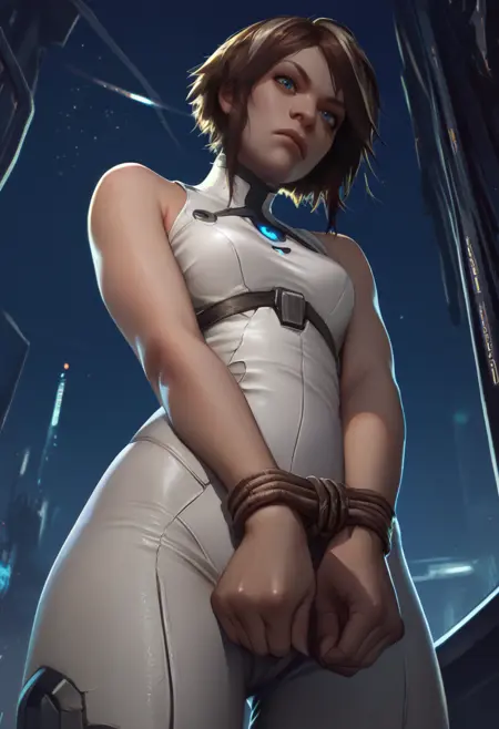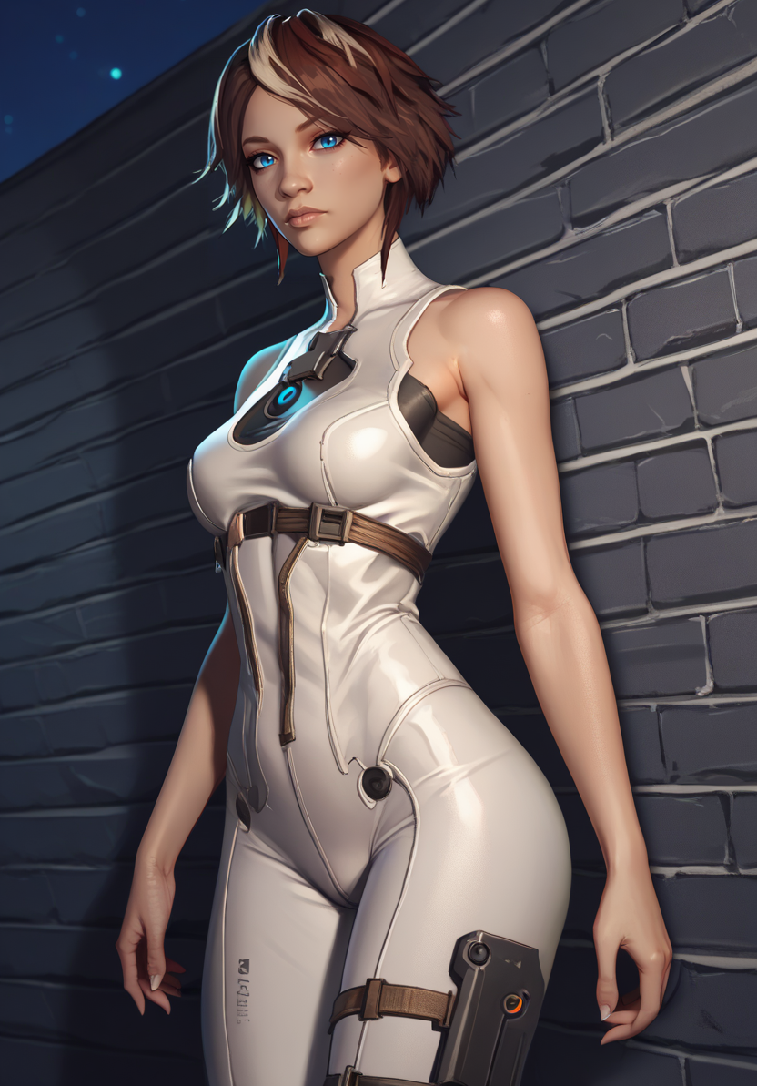 - her alternative was white bodysuit, skin tight, straps,