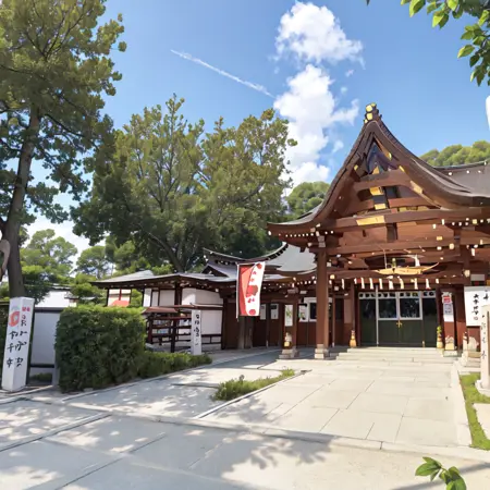 近所の神社の風景を学習させてみました。観光地のような神社ではなく、郊外の街の一角にある静かな神社で、約1100年前に創建されました。