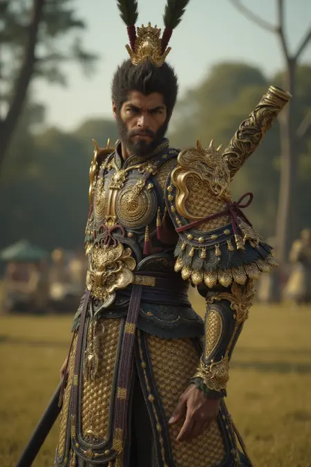 Black Myth: Wukong Wukong armor lora. iIf you do not want to display beard, add prompt words:' clean shaven 'and' no bread ', set the weight to 0.6. Suggest adding other lora.