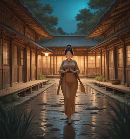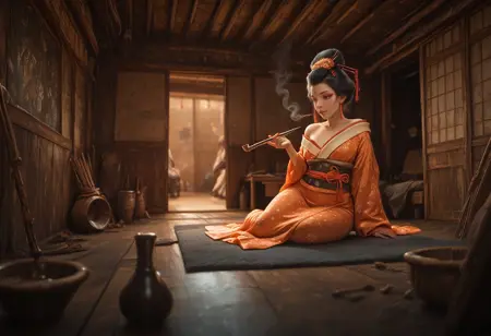 전통적인 일본 봉건 가옥의 실내 배경으로, 겸손한 농민 분위기를 지님. 일부 실외 배경도 가능함. clip skip 1 및 2와 모두 잘 어울리는 편임.