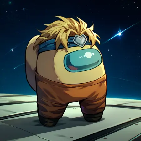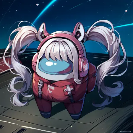 crewmate (among us), spacesuit, no humans, space helmet, full body, solo,