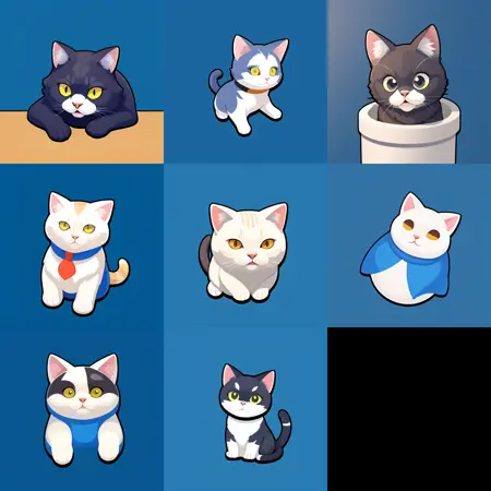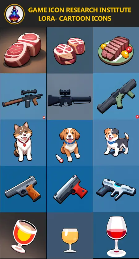示例:<lora:gmic icon_2d cartoon icon:0.85>,gmic icon \(2dkat\),white background,The brass trophy,with a white background and black borders,masterpiece,best quality,great quality,good quality,game item icon,