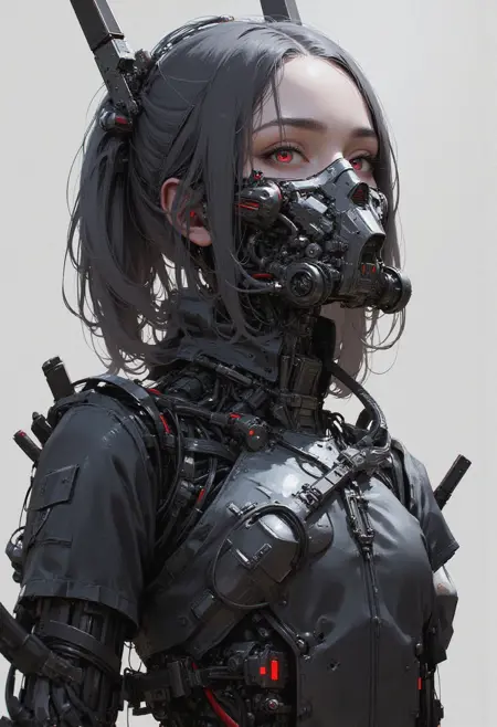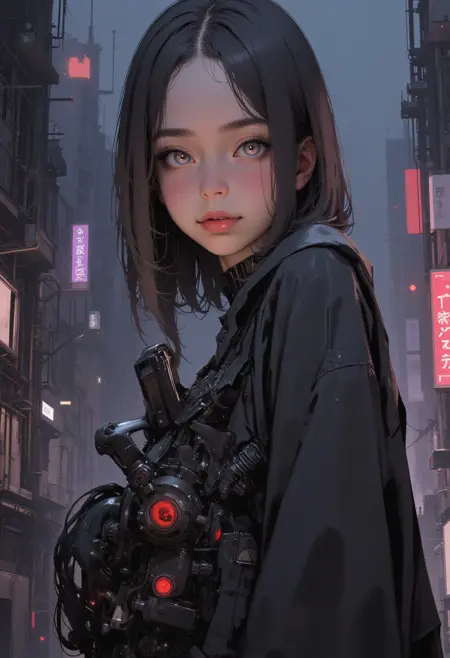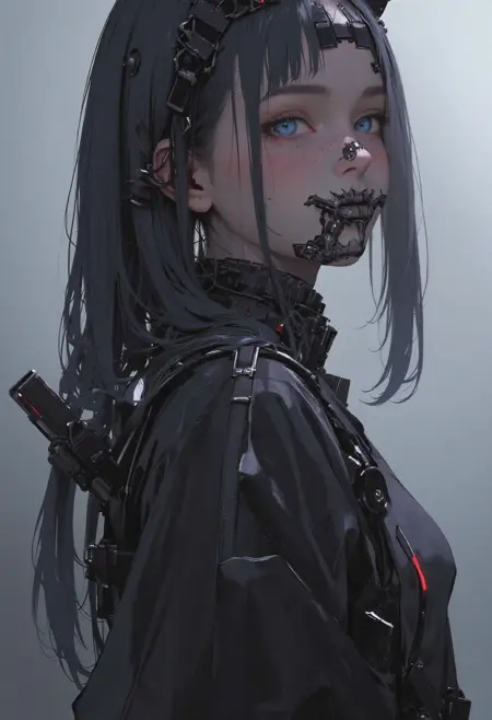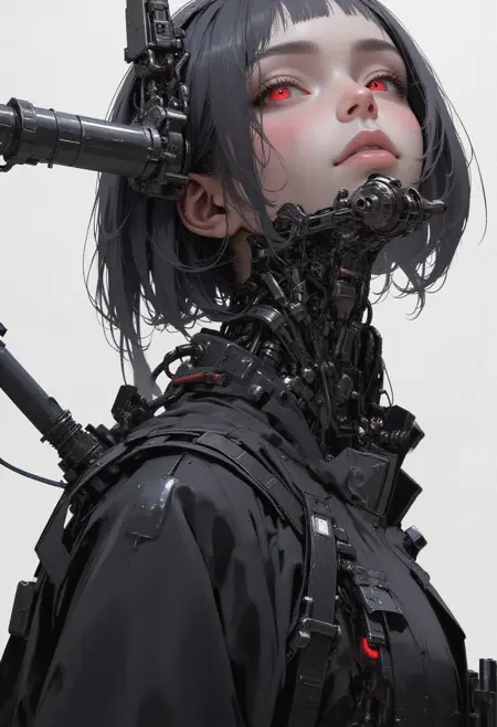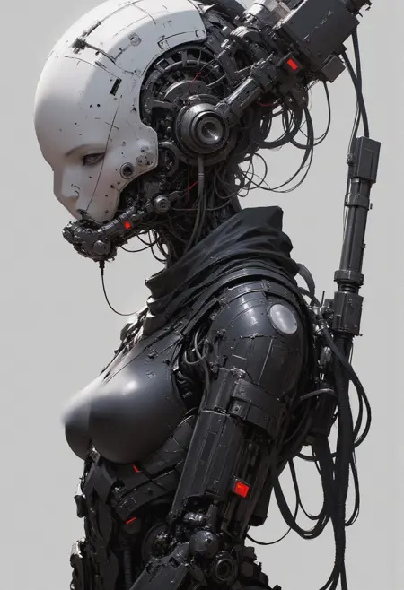A dark Cyberdyne anime focused Lora focusing on cybernetics, intricate mechanical parts, bio-mechanical, and robotic prostheses .