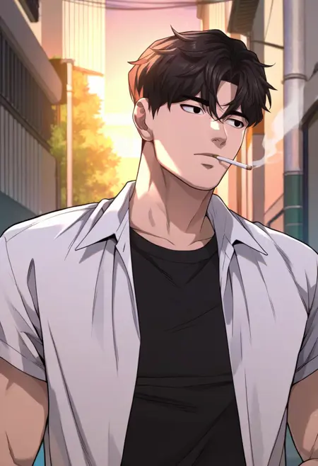 Activation tags: guhajun, short hair, black hair, black eyes, muscular, muscular male