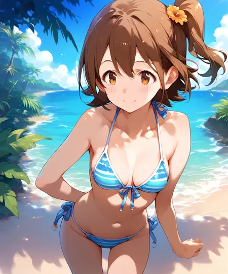 Prompts:score_9,score_8_up,score_7_up,source_anime,lora:未来p:0.9,kasuga mirai,1girl,brown hair,solo,hair ornament,brown eyes,one side up,short hair,