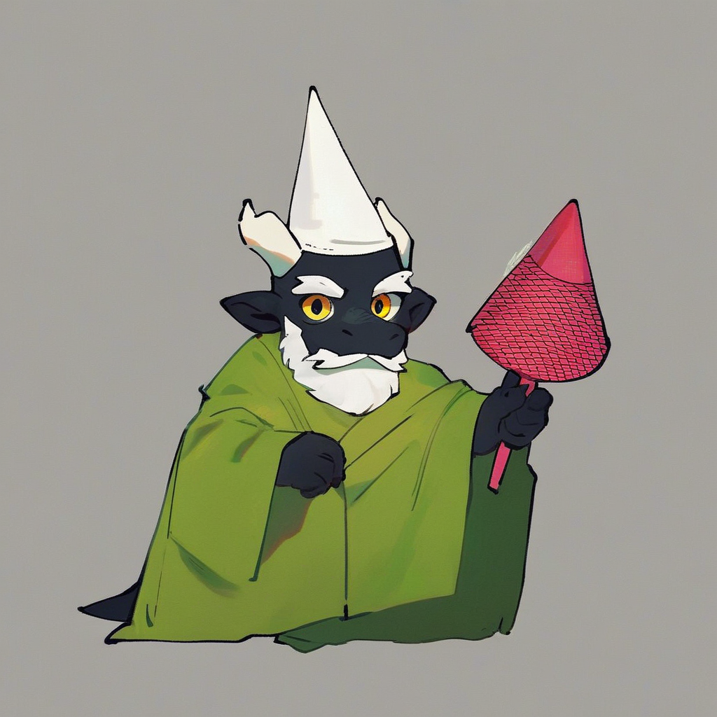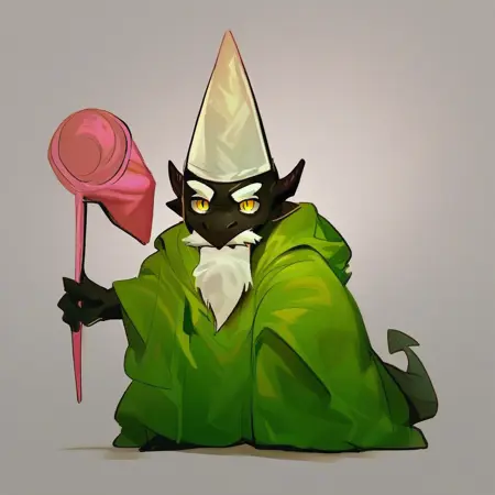 mikus-concept, crawly green gnome, green robe, cone hat, white beard