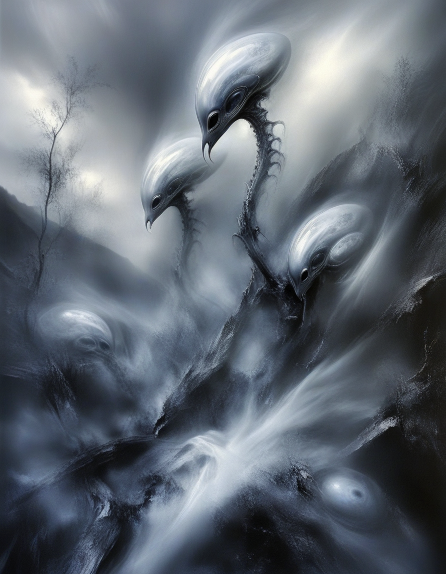 このスタイルは、被写体を霧気で包み込む銀色の画像を生み出し、不気味な雰囲気を演出します。煙、霧、もやを強調できます。トリガーに加えて、効果を高めるには、プロンプトに「vapor」「wispy vapor」「smoke」「fog」「mist」などの単語を追加してみてください。