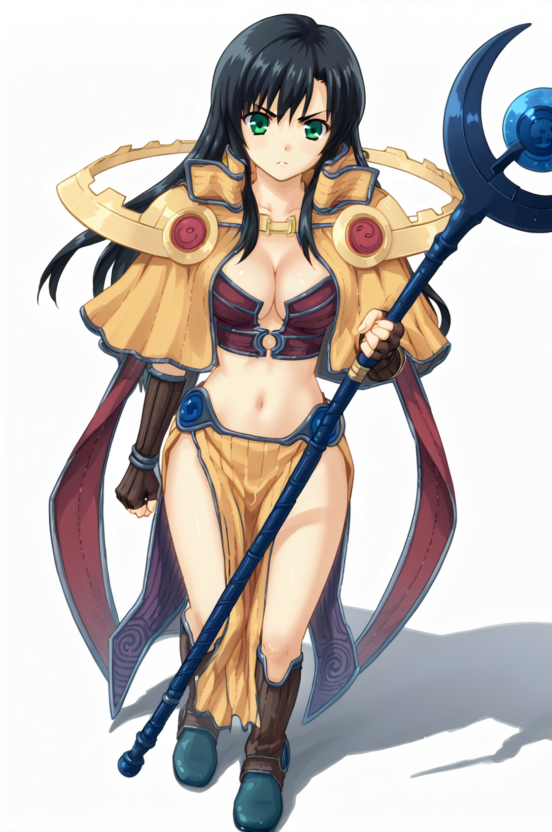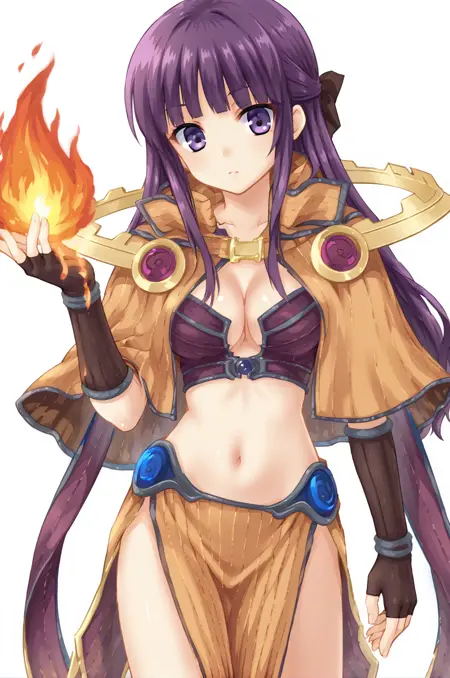 提示词: sageRO,靴子,肚脐,腹部,骨盆帘,乳沟,丁字裤,肩甲,露指手套,肘部手套,短披风,腰部披风