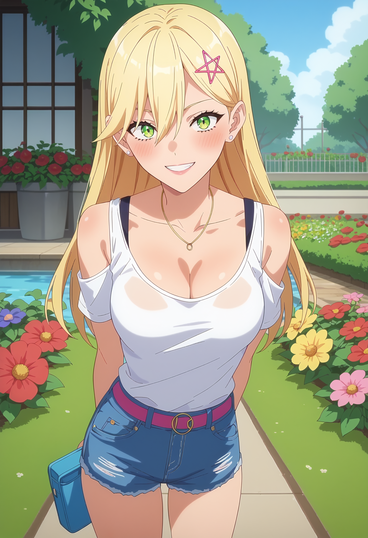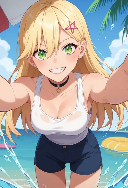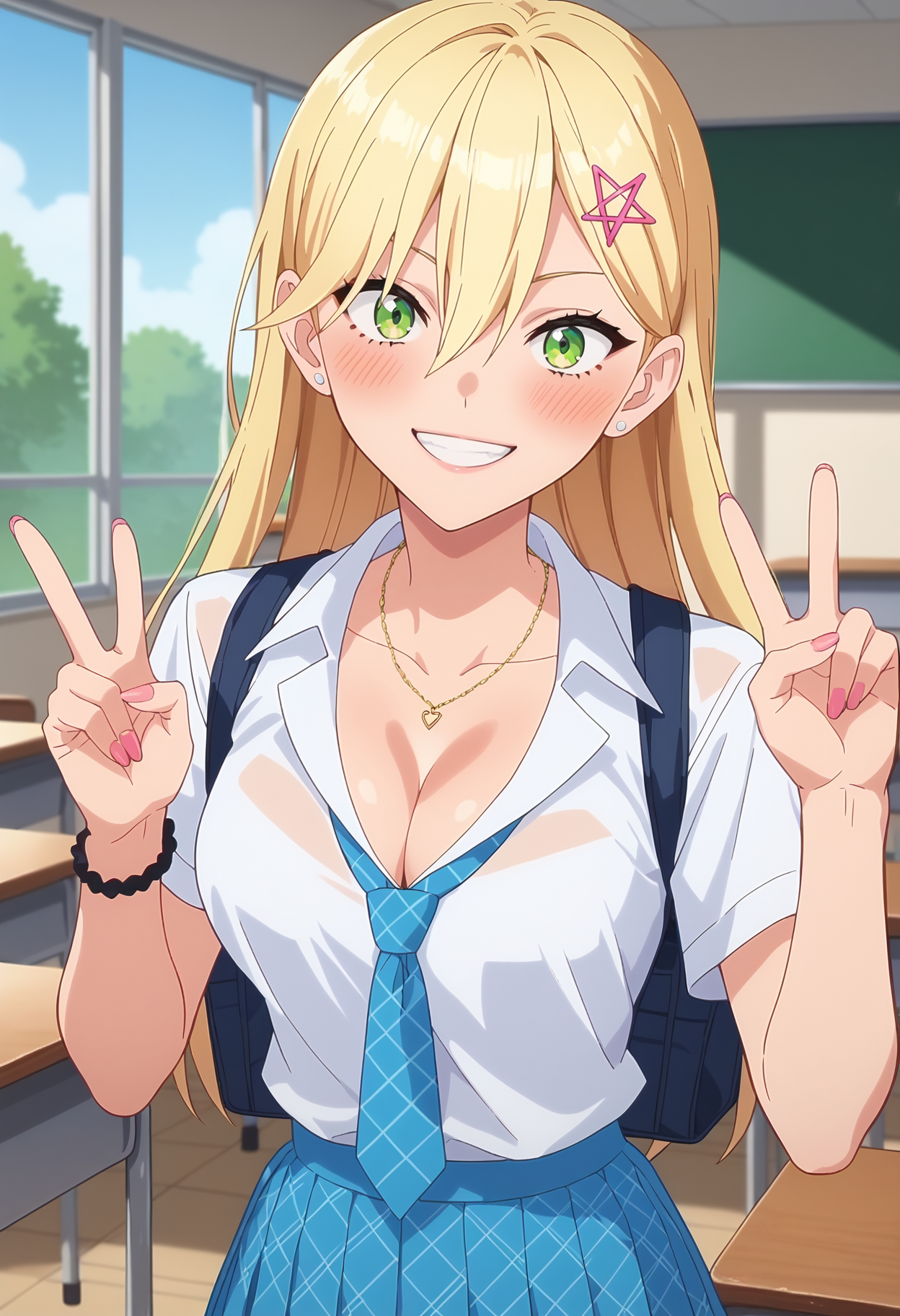 KJOaria, blonde hair, green eyes, hairclip, gyaru, long hair,