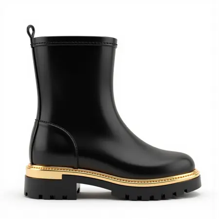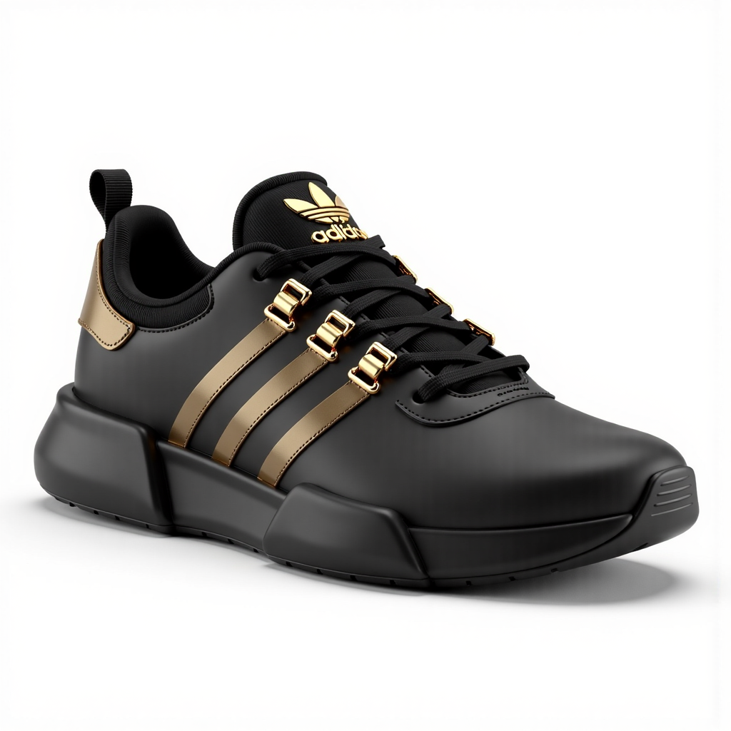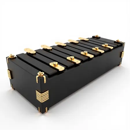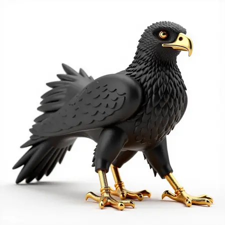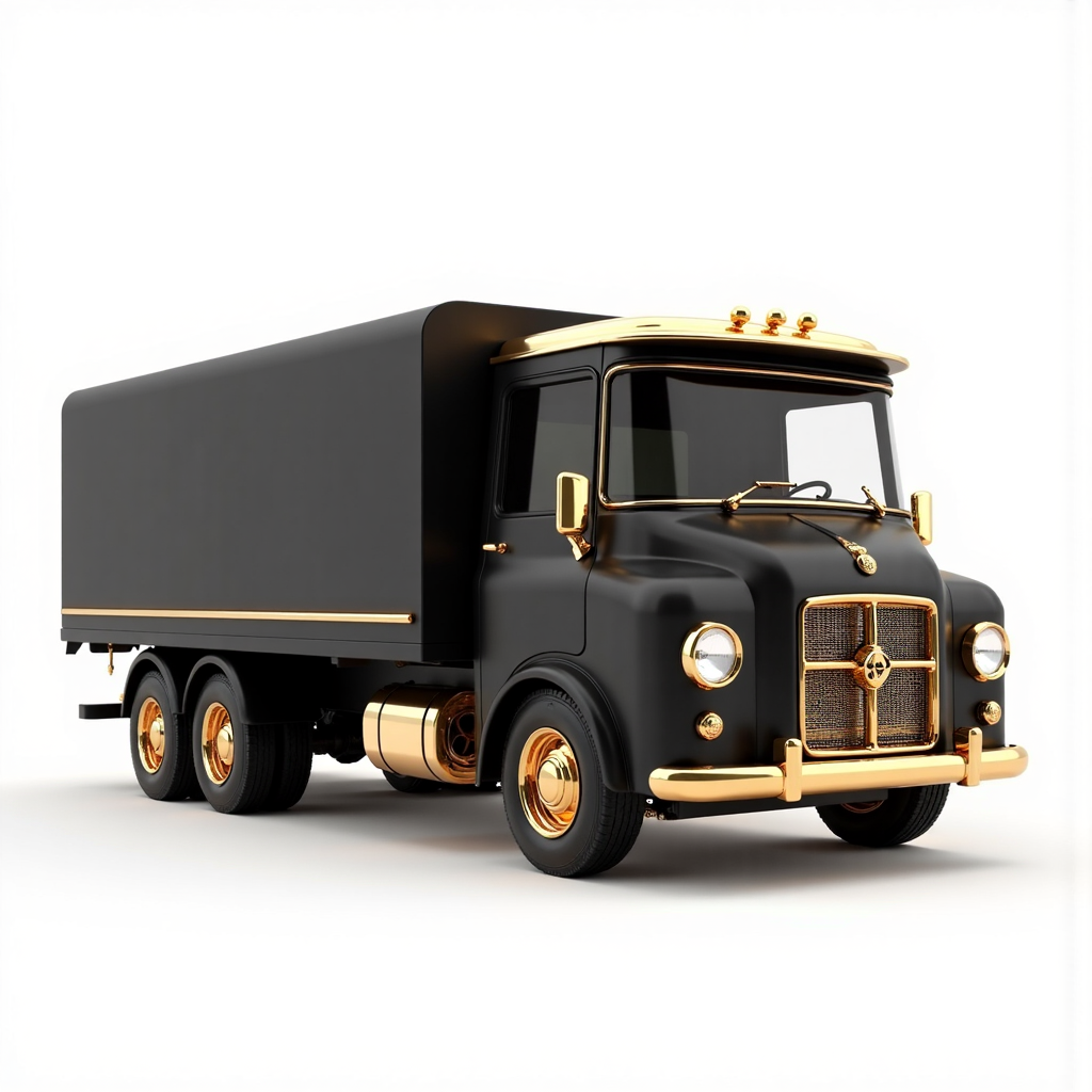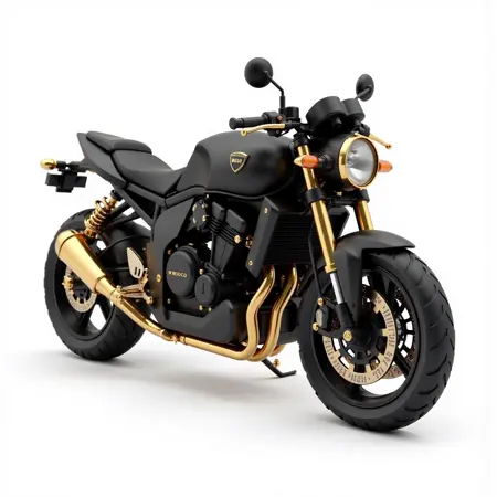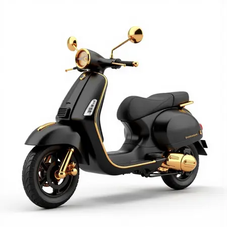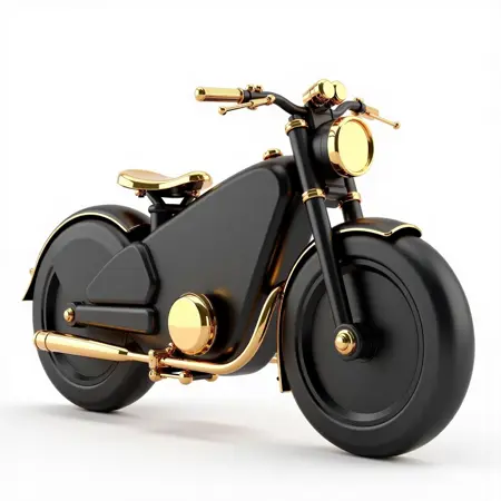 3D model of a {{OBJECT}} featuring a black body and golden elements, set against a pure white background.