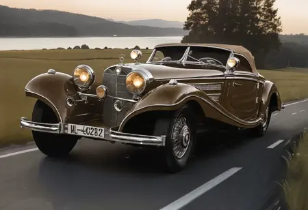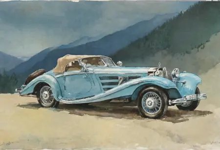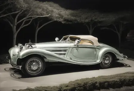 生成1934-1936年梅赛德斯-奔驰500K敞篷车的图像。二战前仅生产了58辆,使其成为世界上最稀有、最具价值的汽车之一。此模型支持{top up|top down}、{前视图、前3/4视图、侧视图、3/4视图、后视图}、{侧窗升起|侧窗降下}、{后座},但很少能正确生成后座。梅赛德斯500K敞篷车独特的造型可与其他LoRA混合,生成独特的复古风格汽车设计。