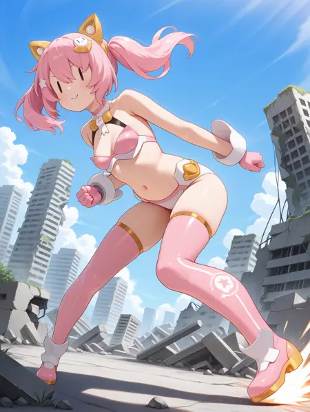 タグ(衣装2): pink thigh boots, pink bra, white panties, star hair ornament, pink gloves,