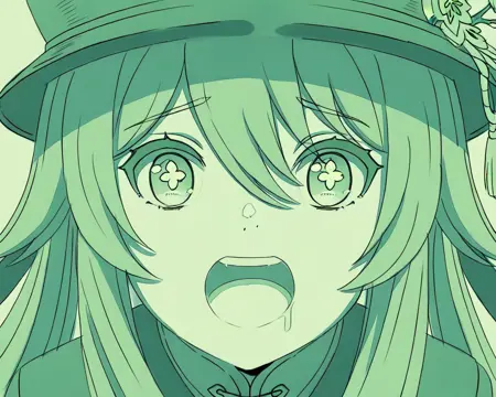 권장 프롬프트: oamhfs, 단순한 배경, 단색, 녹색 테마