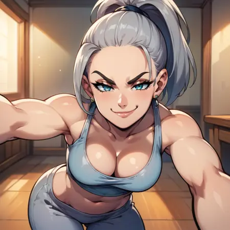 その他の有用なキーワード: 1girl、solo、1990s(スタイル)、イヤリング、レトロなアートスタイル、ポニーテール、グレーの髪