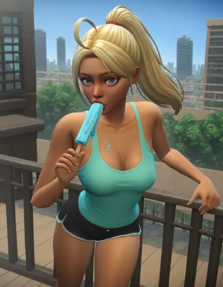 私の例では、Sims LoRAを0.8の強度で、3D Animation [Pony style]を0.3の強度で使用しました。