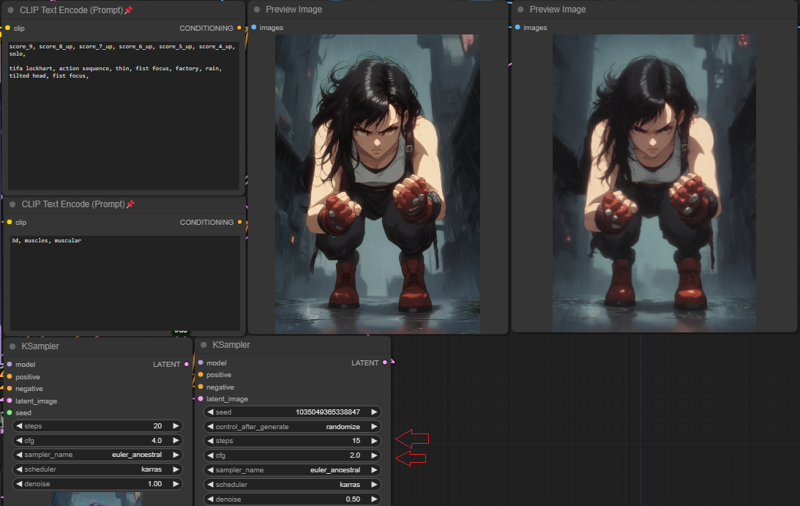 これは、私のKegant PDXLモデル用の画像を生成するために使用した非常にシンプルなComfyUIノード設定です。自由に実験してください。この設定のままにすると、よりシャープで明るい画像が得られ、サイバーパンクやスリムな画像に適しています。