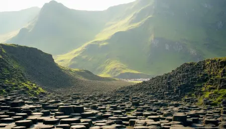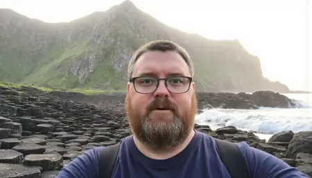 "g14nt, 游客在巨人之路自拍,独特的岩石构造,风景摄影"