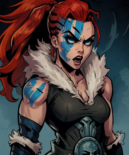 프롬프트에 darkest dungeon, shaded face, dark lines를 추가해 보세요. 별도의 LoRA를 다운로드하지 않고도 스타일을 모방할 수 있습니다.