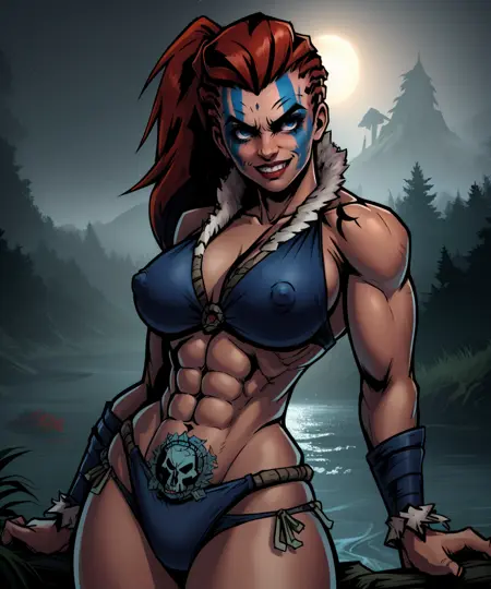 hellion, 빨간 말뚝머리, 파란 얼굴 문신, 파란 몸 문신, 파란 눈