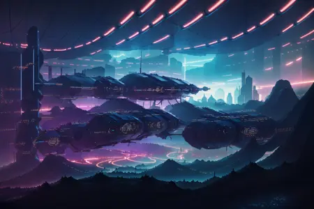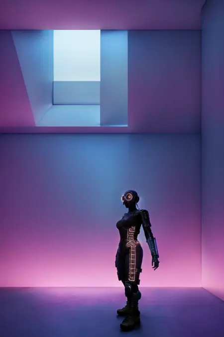 프롬프트 예시: 과학소설, 미래 도시, 과학소설, 사이버펑크, 깔끔한 실내 → 키워드로 흰색, 회색 계열 등을 사용하세요.