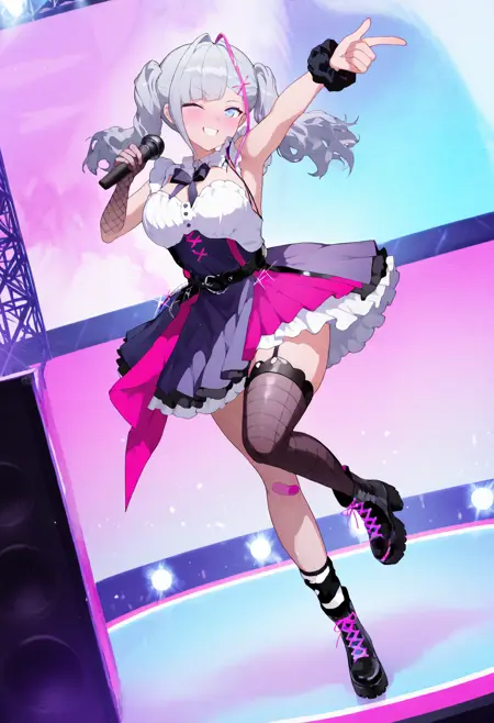 | 训练词汇 | kuro, grey hair, streaked hair, pink hair, heterochromia 已复制! pnc, one side up, hair ornament, black collar, black jacket, long sleeves, open jacket, black shirt, crop top, print shirt, clothes writing, blue skirt, pleated skirt, high-waist skirt, belt skirt, purple trim, black knee socks, white sneakers, single glove, two-tone glove, black glove, grey glove 已复制! gfl, one side up, hair ornament, tactical clothes, black beret, two-tone coat, black coat, purple coat, purple trim, long collar, grey shirt, long sleeves, belt pouch, grey skirt, pleated skirt, brown pantyhose, thigh strap, two-tone sneakers, black sneakers, grey sneakers, two-tone gloves, black gloves, grey gloves, flip phone, cellphone 已复制! cocktail observer, ponytail, blue hair bow, black earrings, cross earrings, black dress, sleeveless dress, blue fur-trimmed jacket, black gloves, half gloves, single fishnet thighhigh, black boots, ankle boots, high heel boots, toeless footwear, toes 已复制! spirit trap, hair bun, double bun, long hair, black horns, eyeball earrings, two-tone dress, purple dress, black dress, frilled dress, frills, spider web, off-shoulder dress, single strap, brown bodystocking, magenta wings, eyeball ornament, chain, brown pantyhose, bat print, black boots, ankle boots, high heel boots, belt boots, single black elbow glove, single detached sleeve 已复制! darknet limited edition, twintails, twin drills, panda ears, fake animal ears, maid headdress, black ascot, purple cross bowtie, bead ornament, black dress, gold buttons, cleavage, purple trim, detached sleeves, frilled sleeves, frills, black elbow gloves, maid apron, black skirt, frilled skirt, garter straps, brown thighhighs, black mary janes, high heels 已复制! extravagant divination, low ponytail, bucket hat, two-tone hat, black hat, purple hat, black glasses, round eyewear, sunglasses, china dress, chinese clothes, sleeveless dress, chinese clothes, vertical-striped dress, bead bracelet, beads, pelvic curtain, thigh strap, pinstripe dress, pinstripe pattern, bead earrings, open robe, off shoulder, bare shoulders, thigh strap, black high heels, bead earrings, tassel, striped dress 已复制! electric wave cyber angel, twintails, idol, black horns, detached collar, frilled collar, frills, black bowtie, multicolored dress, black dress, white dress, purple dress, frilled dress, sleeveless dress, black belt, cross hipchain, purple trim, purple bowtie, single garter strap, single brown thighhigh, single white leg warmer, purple bandaid, bandaid on knee, black boots, ankle boots, purple laces, single fishnet glove, black scrunchie 已复制! all hail the queen, ponytail, gothic lolita, lolita hairband, frilled hairband, white trim, frills, black hairband, black collar, detached collar, detached sleeves, puffy short sleeves, two-tone dress, black dress, white dress, frilled dress, strapless dress, white thighhighs, black mary janes 已复制! |