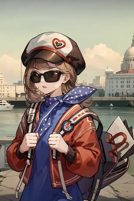 如果你不使用上面的服装提示词,它将只会生成星锑的容貌,不生成官方服装,也不会戴上墨镜。(脖子上可能会有围巾)