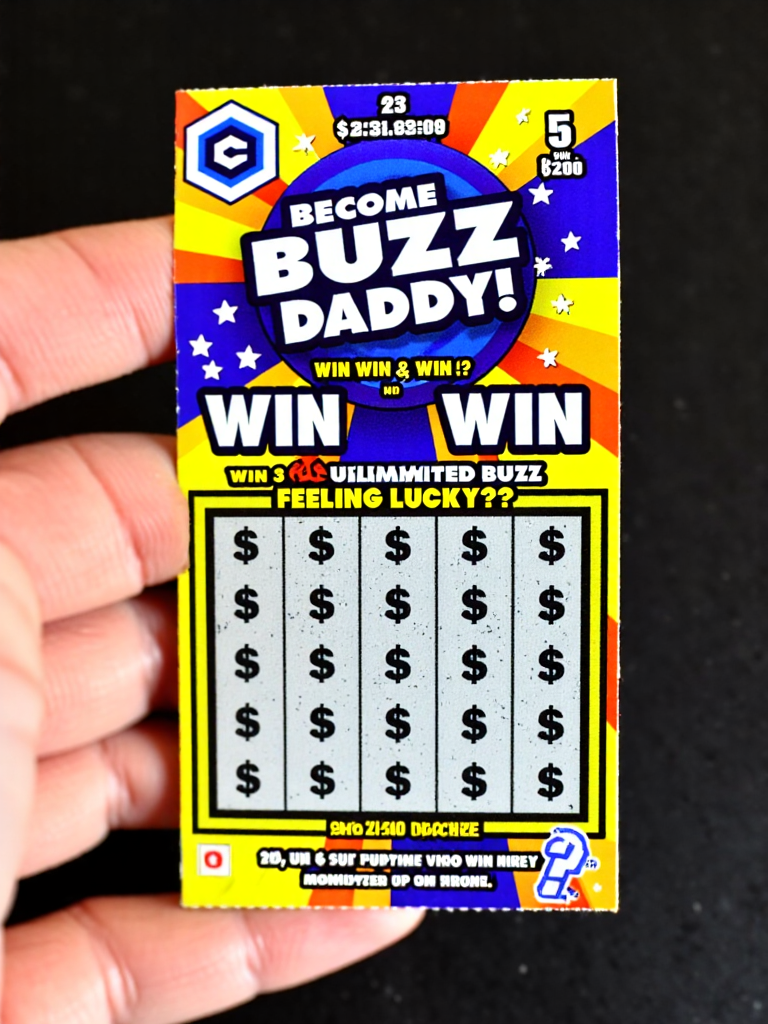 例のプロンプト: 手がスクラッチ宝くじチケットを握っていて、上部には金歯をしたカートゥーン風のゴリラがギャンガーに扮している。サブタイトルは「BLING KING - EASY MONEY」と太字で目を引く文字で表記されている。チケット上には「WIN WIN WIN」、「GOLD EDITION」、「FEELING LUCKY?」などのさまざまなテキストが見える。下部にはドル記号が散りばめられた大きなスクラッチ可能エリアがあり、下端にはチケット番号「549857348」が表示されている
