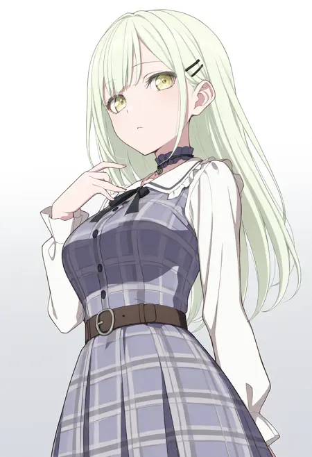 トリガーワード:wakaba mutsumi, yellow eyes, light green hair, platinum blonde hair, hairclip
