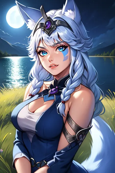 Io, 파란 눈, 늑대 귀, 쌍뜨개, 긴 머리, 연한 파란색 또는 연한 보라색 머리, 또는 회색 머리,