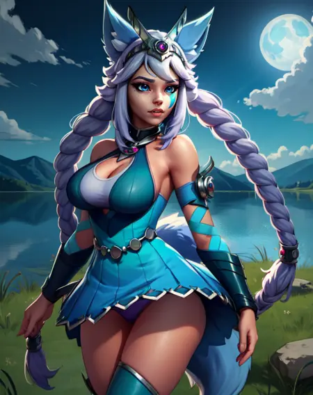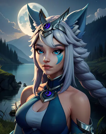 Io,蓝眼睛,狼耳,双辫子,长发,浅蓝色或浅紫色头发,或灰色头发,