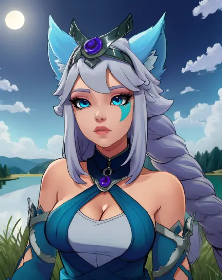 Io, 파란 눈, 늑대 귀, 쌍뜨개, 긴 머리, 연한 파란색 또는 연한 보라색 머리, 또는 회색 머리,