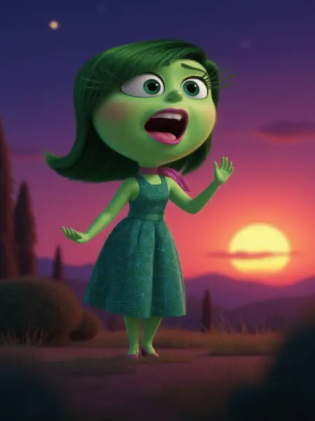 샘플 프롬프트: Disgust char, Disgust, Disgust Inside Out 2, nature backgroud