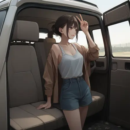 Optional: interior, back of van, outdoors, open doors