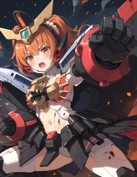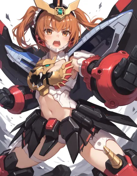 태그(옷 1): 검은 스러스터, 전체 갑옷, 금색 가슴 갑옷, 흰색 어깨 갑옷, 검은 갑옷 치마, 검은 헬멧, 검은 기계 장갑, V핀