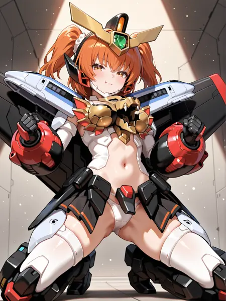 标签(服装3):白色装甲大腿靴,露脐,白色过膝袜,白色装甲手套,白色头盔,紧握的手,白色胸甲,白色内裤,发圈,
