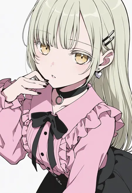 若葉睦:wakaba mutsumi、yellow eyes、light green hair、platinum blonde hair、hairpin