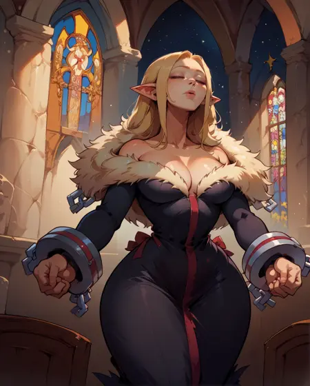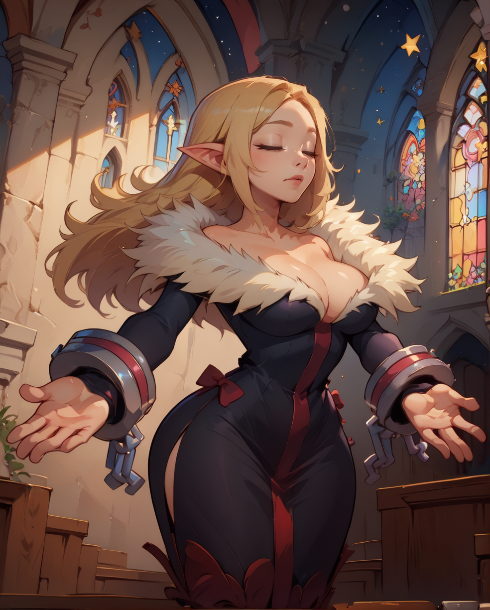 Cleric, 金色头发,长直发,闭眼,尖耳朵,
