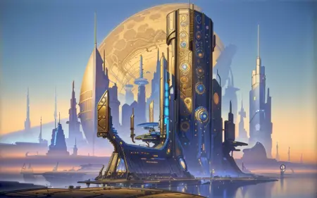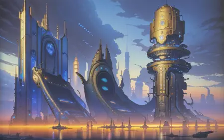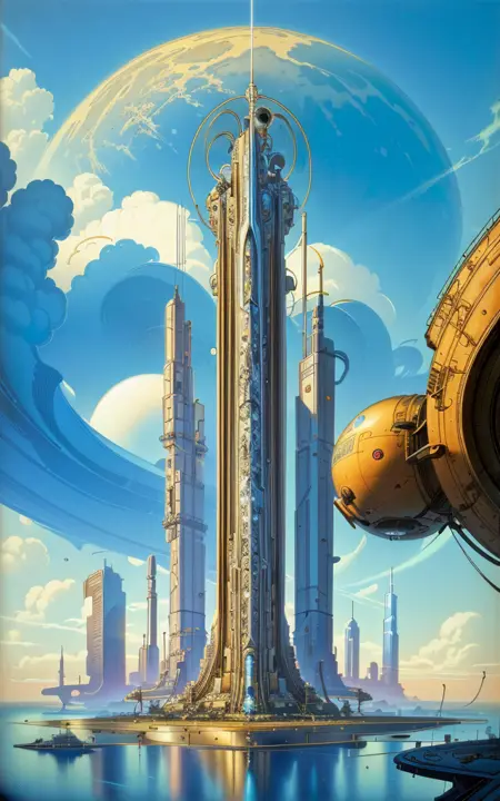 michael whelan, science fiction, landscape, retro sci-fi artstyle ,1950s, sf
