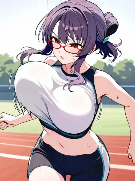 LoRAのトリガー語は**"Suzune_Rin_XL、赤い目、紫の髪、折りたたみポニーテール、髪の結び目、ヘアクリップ、巨大な胸、赤枠の眼鏡"、または"Suzune_Rin_XL、赤い目、紫の髪、折りたたみポニーテール、髪の結び目、ヘアクリップ、巨大な胸、眼鏡なし"**です。