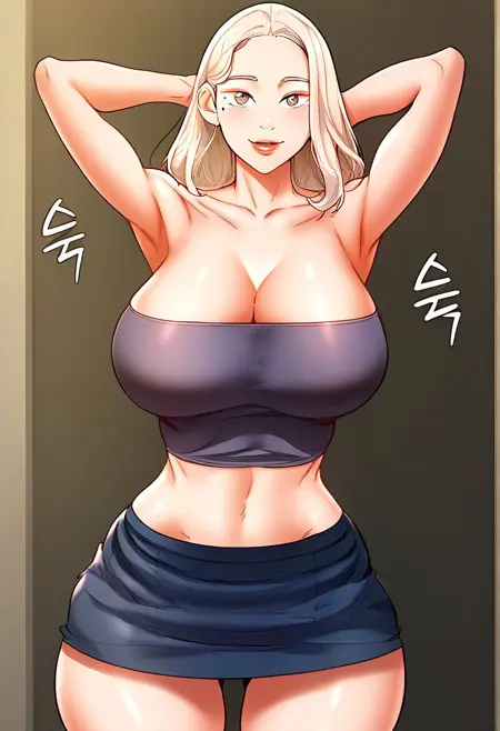 Im Ga-Hae: im_ga-hae, beautiful pale skin, piercing light brown eyes, beautiful blonde hair, beautiful long hair, huge and shaggy breast,