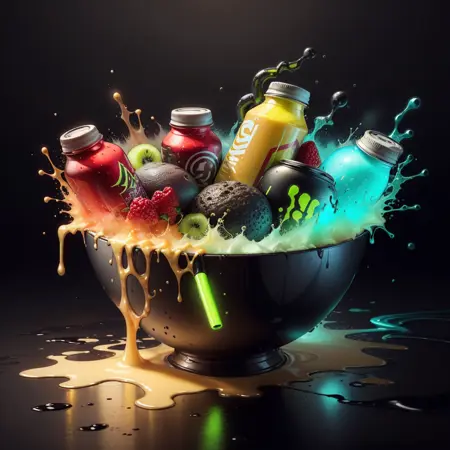 此 LoRA 经训练,将能量饮料作为 literal 的动力来源。