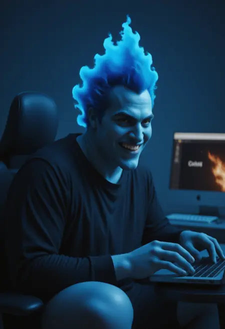 - 青い炎のような髪と青い肌を持つ男性ハデス