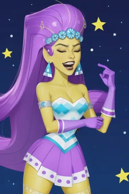 Princess Mandie The Fairly OddParents Character Lora. I recommend using 0.8~1.0 strength. This is a request, made on the Civitai discord.