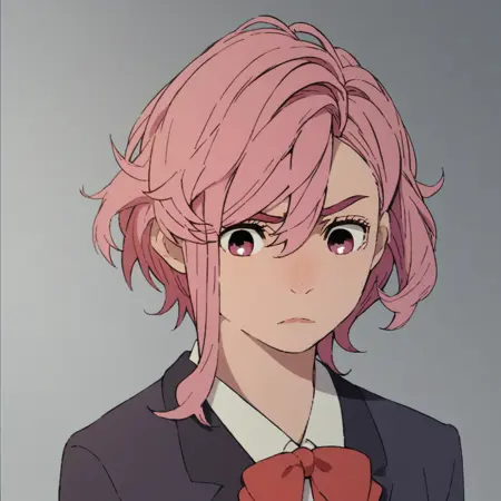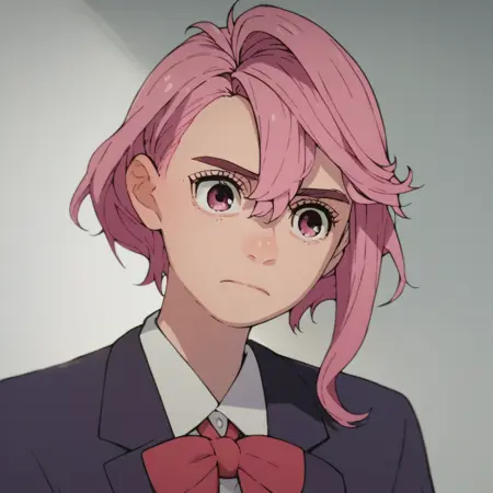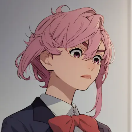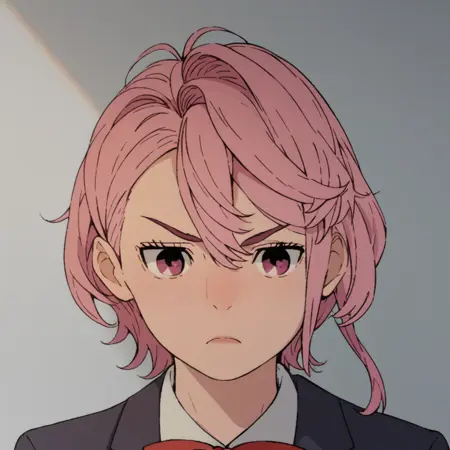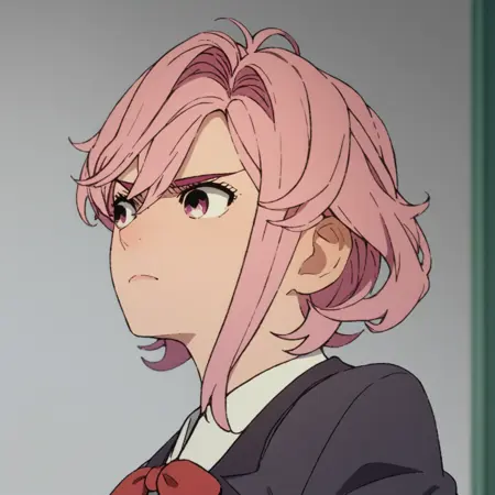 AiraShiratoriDDDanime1, pink hair, dark pink eyes, school uniform