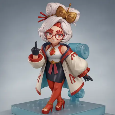 무게는 0.8에서 1.2까지 조절할 수 있습니다. 권장값은 1입니다. 거의 모든 캐릭터와 개념과 호환됩니다. 프롬프트에 따라 chibi를 추가하면 피규어 또는 네ンド로이드를 얻을 수 있습니다.