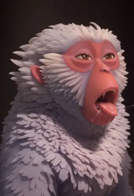 1girl, furry, female japanese macaque, ape, primate girl, anthro, white fur, dark pink skin, pink ears, brown eyes, grey hands, grey feet,