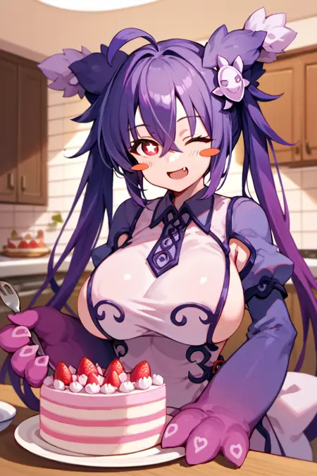 | 训练词汇 | long hair, blush, smile, open mouth, black hair, hair ornament, red eyes, thighhighs, bow, ribbon, holding, animal ears, hair between eyes, twintails, very long hair, tail, purple hair, :d, heart, multicolored hair, medium breasts, wings, fang, armpits, star (symbol), two-tone hair, tall girl, leotard, symbol-shaped pupils, covered navel, gradient hair, chain, blush stickers, heart-shaped pupils, bat wings, outstretched arm, monster girl, claws, demon wings, animal hands, +_+, star hair ornament, wand, low wings, star-shaped pupils已复制! |