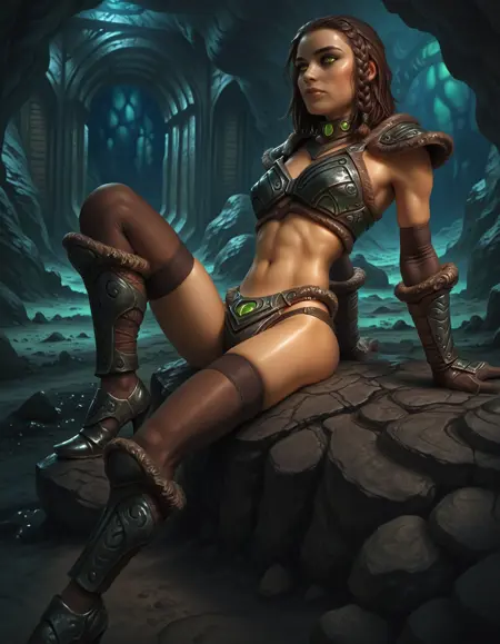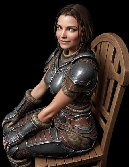Outfit: armor, fur trim, breastplate, gauntlets, fingerless gloves, belt, armored boots