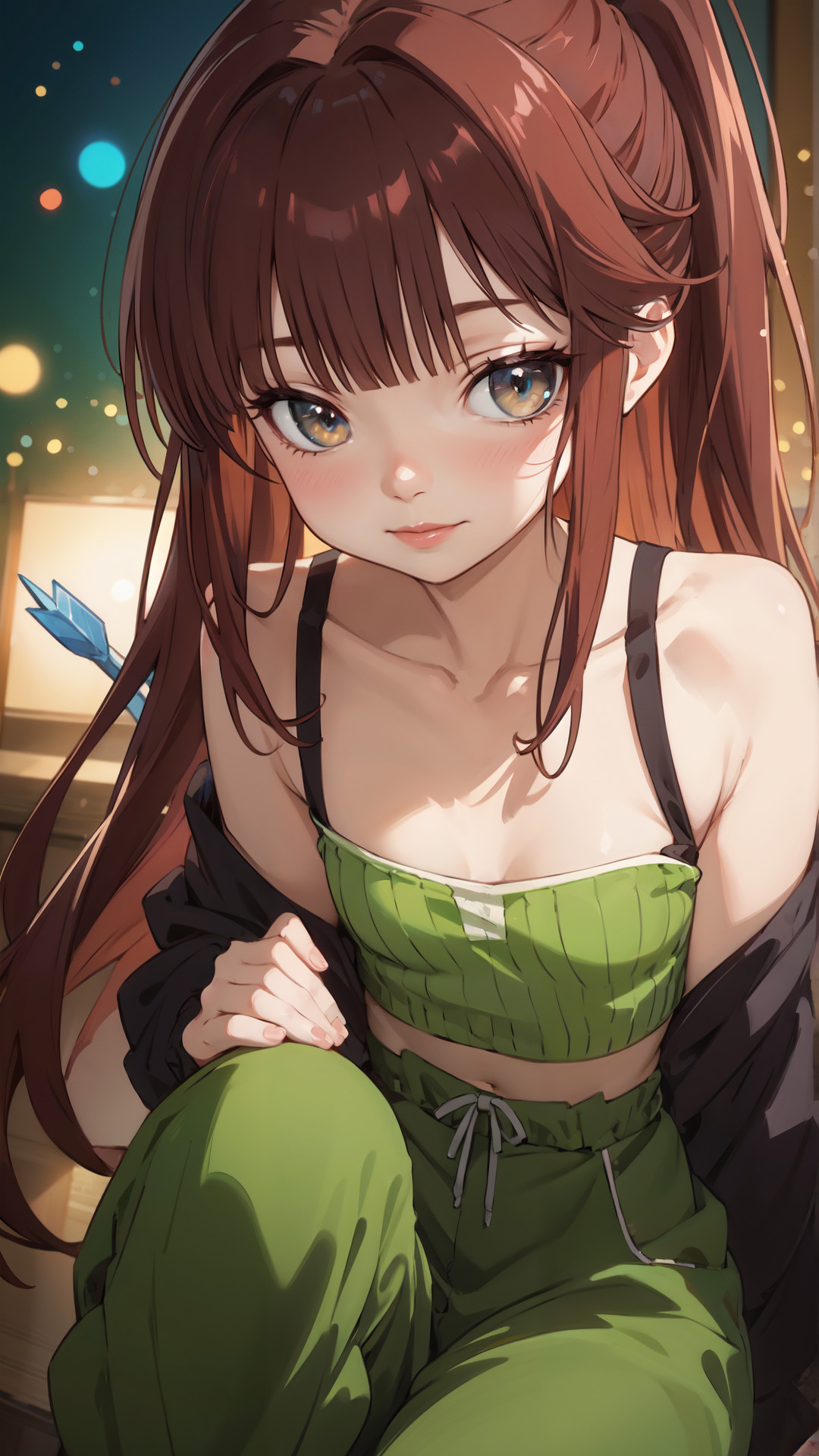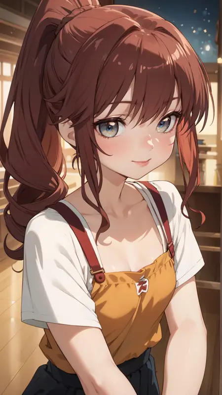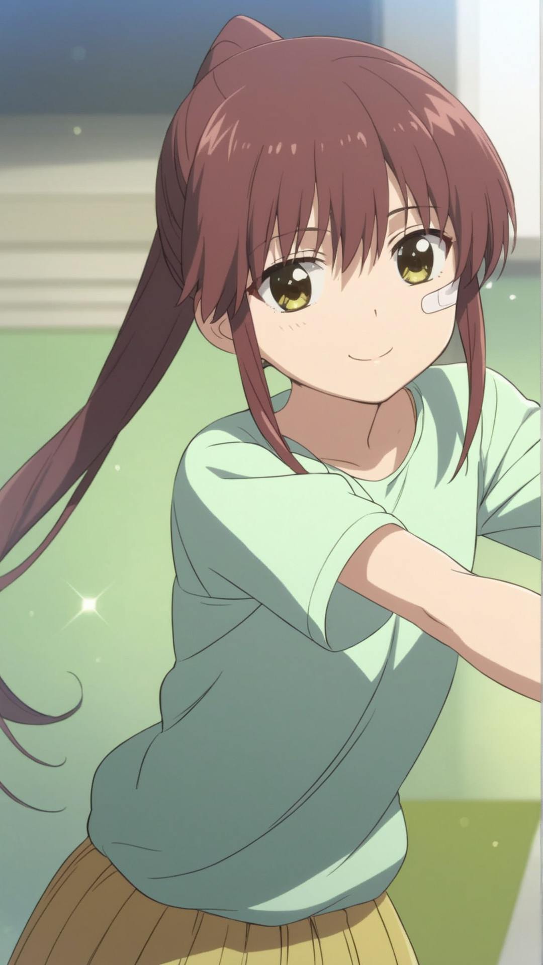 권장 프롬프트: "riko_suminoe, 애니메이션 소녀, 1girl, solo, 긴 머리, 미소, 갈색 머리, 노란 눈, 포니테일, 빨간 머리, 반창고, 얼굴에 반창고,"