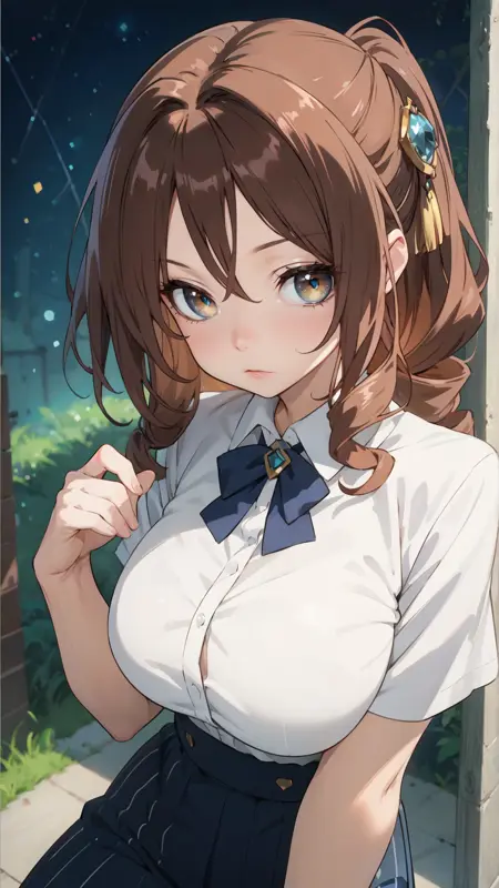 Suggested prompts : "ako_suminoe, an anime girl, 1girl, solo, smile, open mouth, skirt, brown hair, brown eyes, school uniform, serafuku"